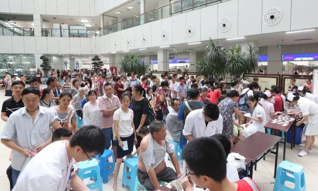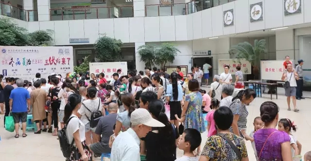 早上8:30,小编在西南医科大学附属中医医院门诊中庭就看到了三伏贴火热的场面。