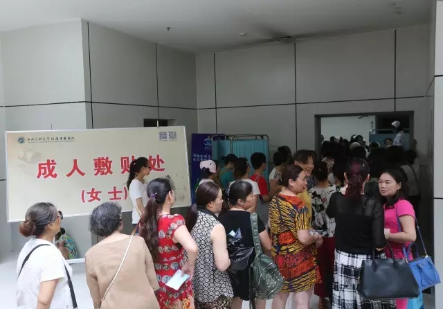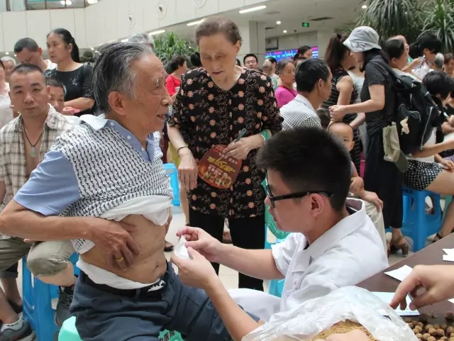 敷贴现场分儿童组、男士组和女士组,现场人多却忙而有序。