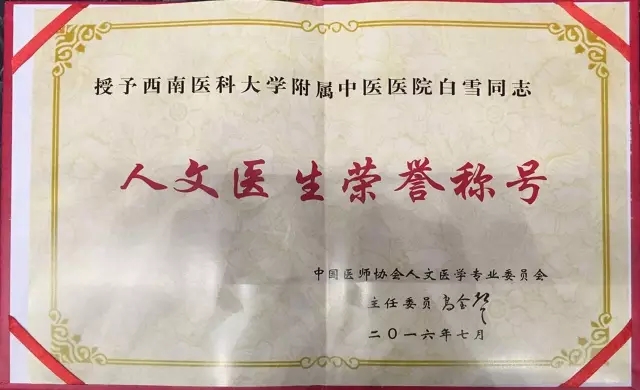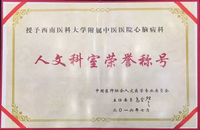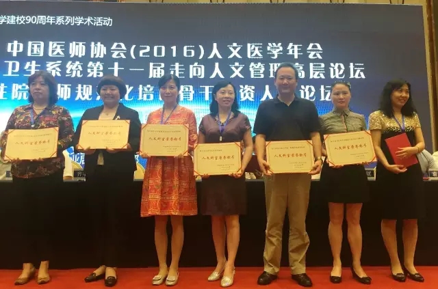 另讯,2016年7月15-16日,在中国医师协会人文医学年会全国卫生系统第十一届走向人文管理高层论坛、住院医师规范化培训骨干师资人文论坛上,我院心脑病科荣获中国医师协会人文医学专业委员会“人文科室”,大内科兼心脑病科白雪教授荣获“人文医生”荣誉称号。
