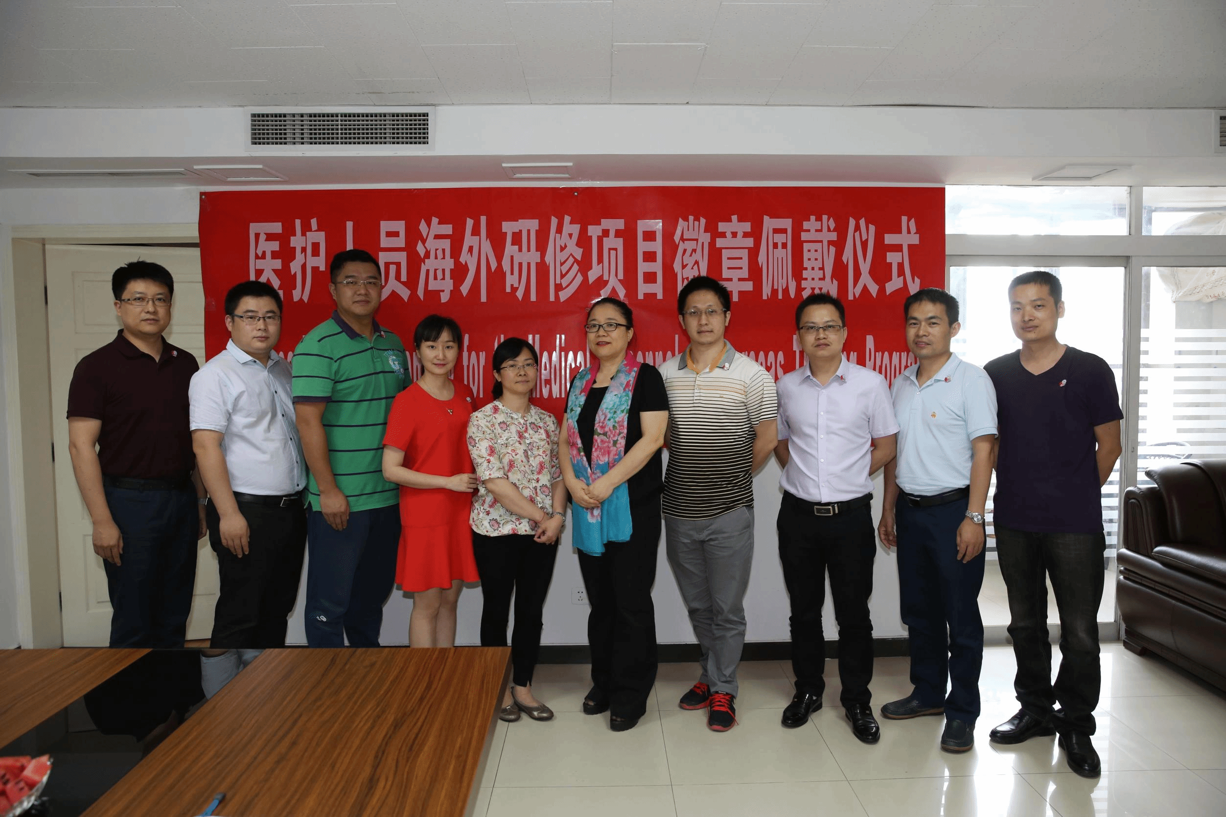 2016年7月1日,医务人员赴英国研修项目行前会在北京举行,我院普外科主任助理郭伍斌主治医师即将赴英国布莱顿苏塞克斯大学医院进行为期三个月的研修学习。行前会上,国际应急管理学会医学委员会(TEMC)主任助理殷秀梅为队员们佩戴徽章,并要求学员们在学习期间遵守外事规定、遵守医院要求和团队纪律,顺利学成回国。
