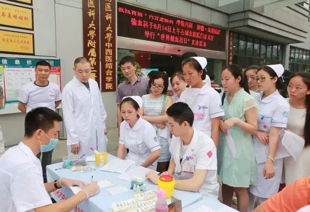 2016年6月14日,泸州市庆祝第十三个世界献血者日暨公务人员献血活动在我院举行。活动现场,四川省献血领导小组副组长、四川省卫生计生委主任沈骥,泸州市副市长、泸州市献血领导小组组长马宗慧,四川省青联卫生体育界别副主席、前奥运射击冠军张山等出席活动并带头献血。来自泸州市献血领导小组成员单位负责人、驻泸省直医疗机构、市直卫生计生单位医务人员及无偿献血志愿者近200人参加无偿献血活动。