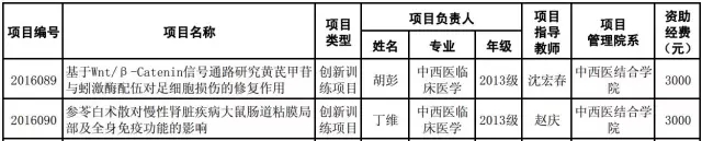 近日,根据《关于公布2016年度校级大学生创新创业训练计划项目名单及下达资助经费的通知 西南医大教〔2016〕3号》,西南医科大学中西医结合学院8名教师指导的大学生创新创业训练计划项目获批立项。