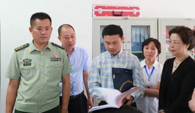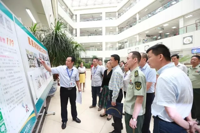 向检查组汇报医院消防安全工作情况 查看资料 现场考核工作人员