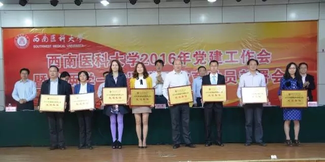 会议现场 2016年4月28日,在西南医科大学2016年党建工作会暨“两学一做”学习教育动员部署会上,我院荣获“2015年度宣传思想工作先进集体”称号,副院长杨文信荣获2015年度处科级干部考核优秀个人和2015年党风廉政建设先进个人,宣传部张小玉荣获“2015年度宣传思想工作先进个人”称号。 颁奖现场 颁奖现场(前排左一:杨文信)