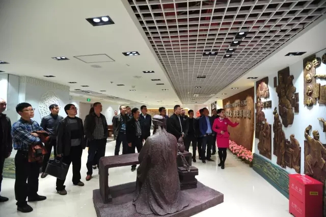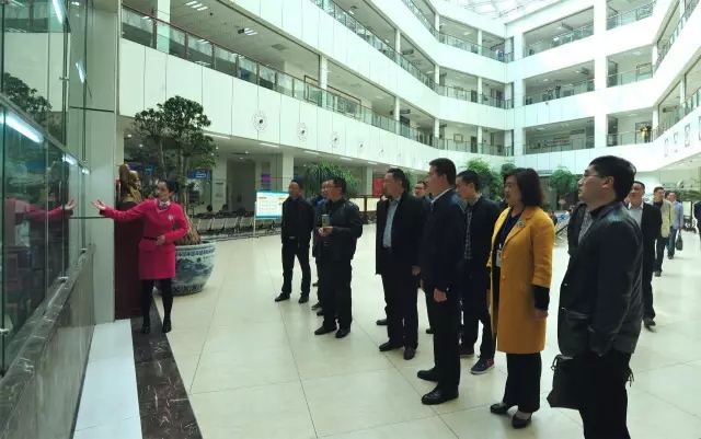 来宾们参观我院门诊大厅中药展示柜