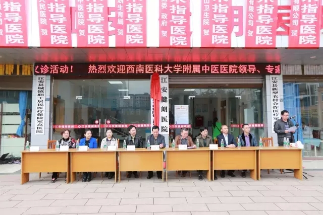 2016年3月30日,我院定点指导江安健朗医院授牌仪式顺利举行。我院党委副书记兼纪委书记赵国强及相关职能部门负责人,江安县卫计局党委委员石磊、江安县四面山镇党委书记陈七林、江安健朗医院院长胡全成等相关人员参加了授牌仪式。