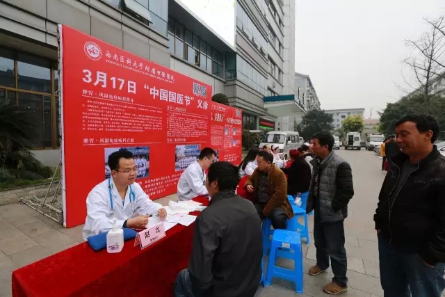 2016年3月17日,我院在城北门诊广场举办了“中国国医节”义诊活动,脾胃·风湿免疫病科、针灸·康复科专家现场坐诊,为前来咨询的市民送上了春日好礼。 市民张阿姨近来感觉食欲不振,全身乏力且皮肤油腻,“听说今天西南医科大学附属中医医院有义诊活动,所以我就想着能早点过来请专家看看。”