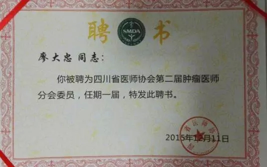 2015年12月11日,四川省医师协会第二届肿瘤医师分会在成都召开,我院肿瘤·血液病科主任廖大忠副教授当选为委员。