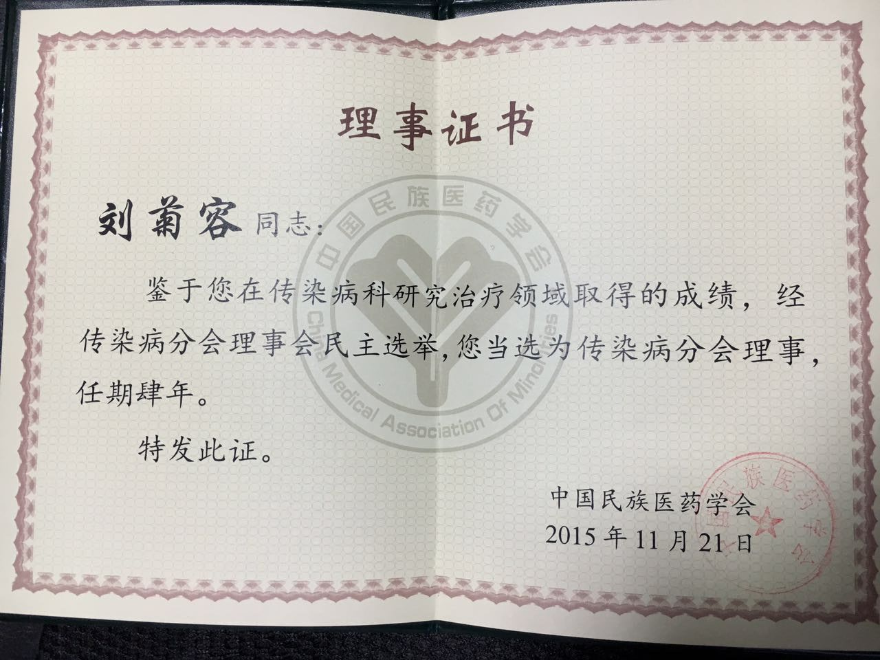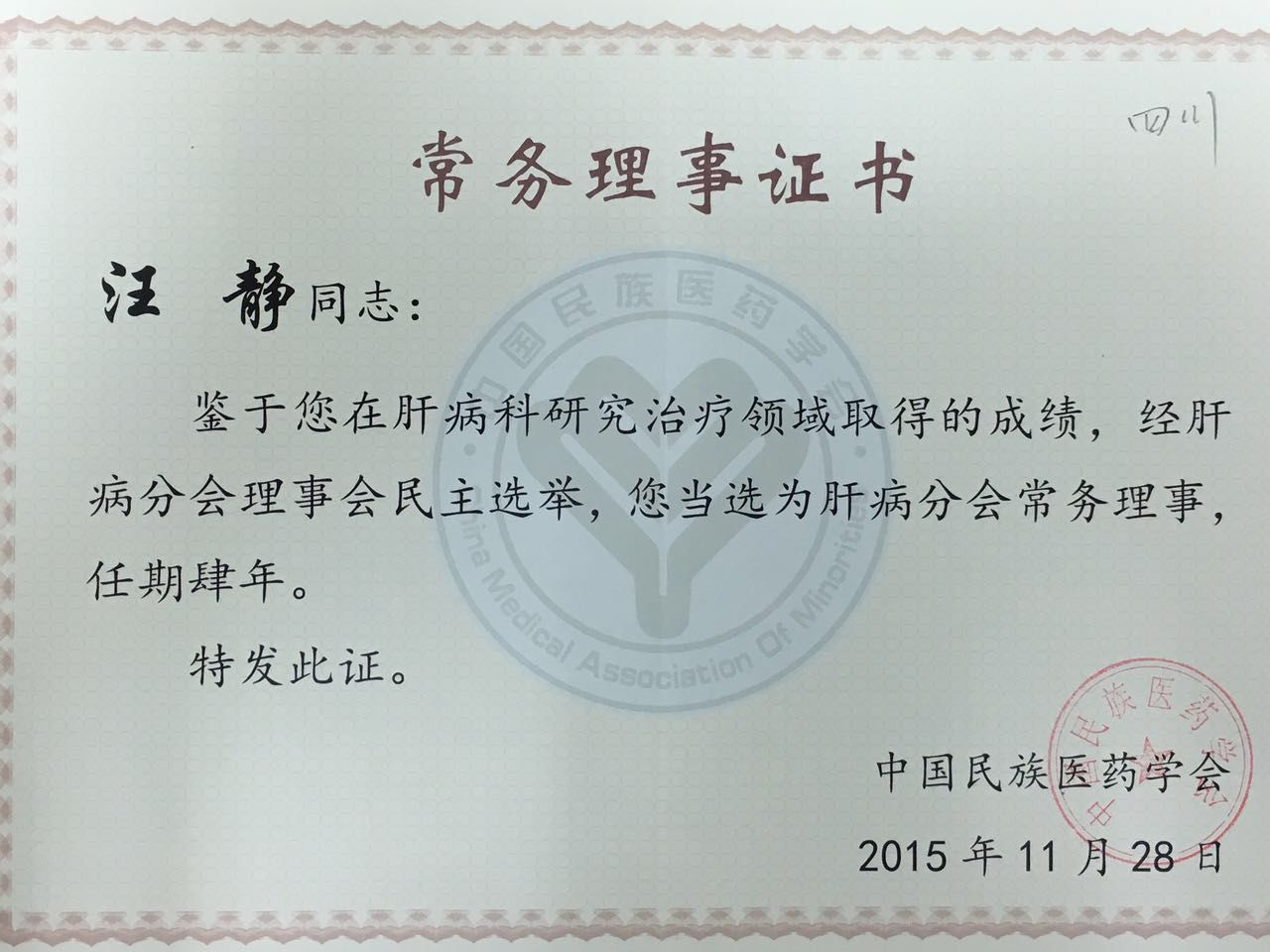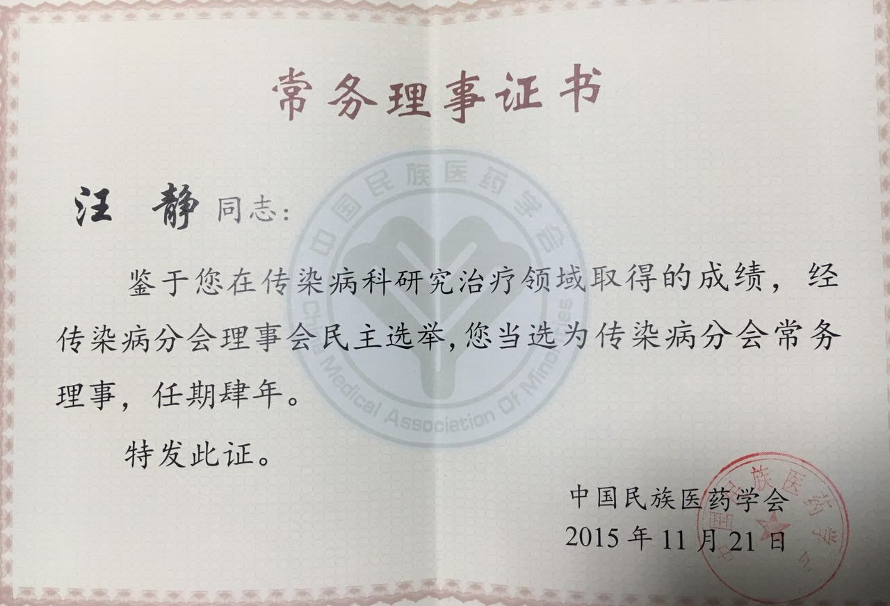 2015年11月20-22日,我院大内科副主任兼肝胆病科主任汪静教授当选为中国民族医药学会传染病分会常务理事,刘菊容主治医师当选为理事。