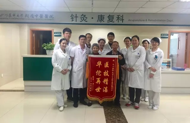 2015年10月26日,患者周顺华将一面写有“医技精湛 华佗再世”的锦旗送到我院针灸·康复科医护人员手中以示感谢。