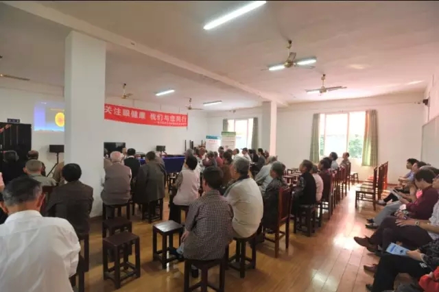 义诊前,牟琳副主任医师、曹兴伟主治医师分别作了《白内障治疗新进展》《出血性眼底疾病》专题讲座,四川化工职业技术学院100余名退休职工聆听了讲座。