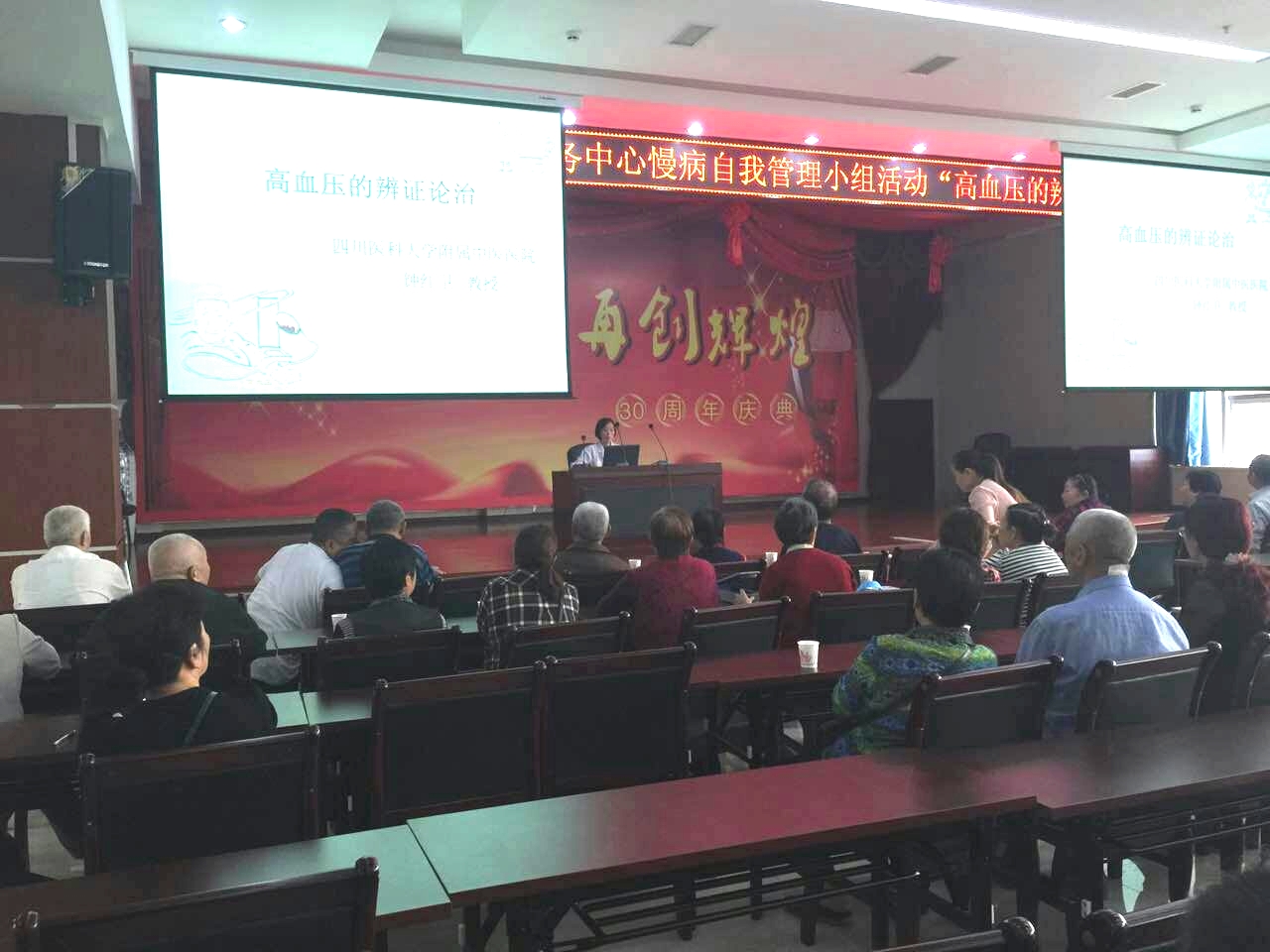 2015年10月13日,我院水井沟门诊部副部长钟红卫教授到莲花池社区作了题为《高血压病的辨证论治》专题讲座,并对与会人员进行了高血压知识趣味测试和现场答疑等活动。莲花池社区居民及龙马潭区中医院医护人员等50余人参加了此次活动。