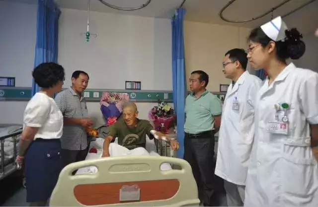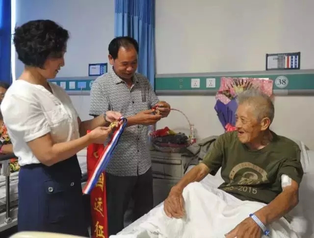 2015年7月30日,我院党委书记王琳、副院长杨文信代表医院前往普外科看望已做完手术的91岁抗战老兵刘正金,祝愿老人家早日康复。