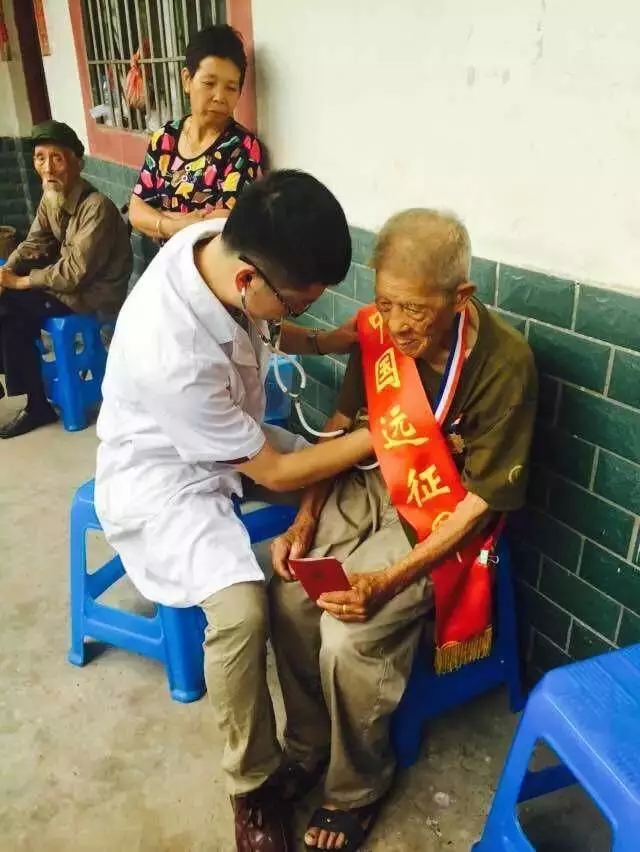 2015年7月21日,我院普外科主治医师丁亮前往91岁抗战老兵刘正金的家中,为他进行体检。