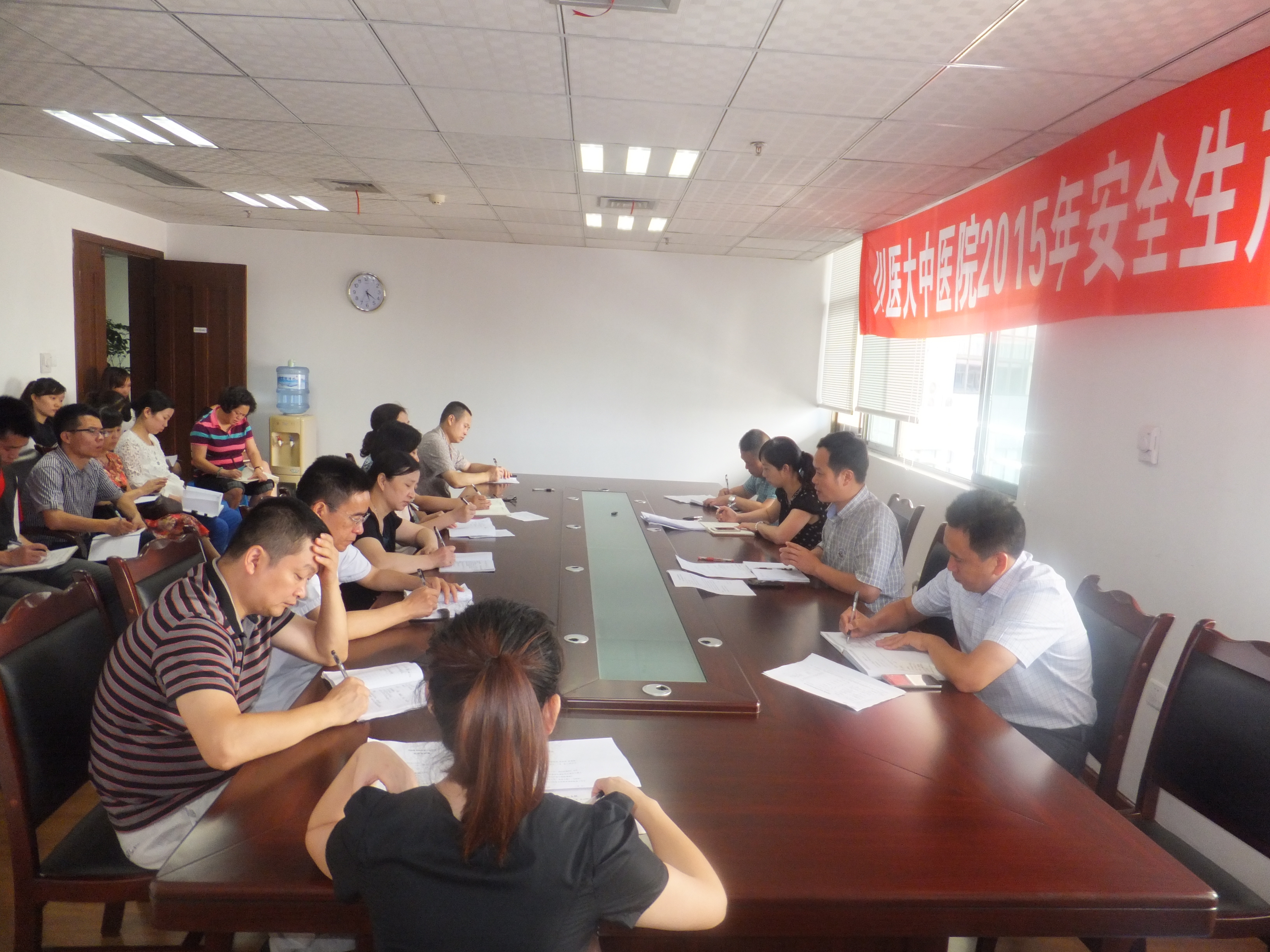 会议学习贯彻了省、市《关于开展2015年“安全生产月”活动的通知》、泸州市消委会《关于印发全市夏季消防检查工作方案的通知》等文件精神,通报了近期医院综治维稳及消防安全情况。