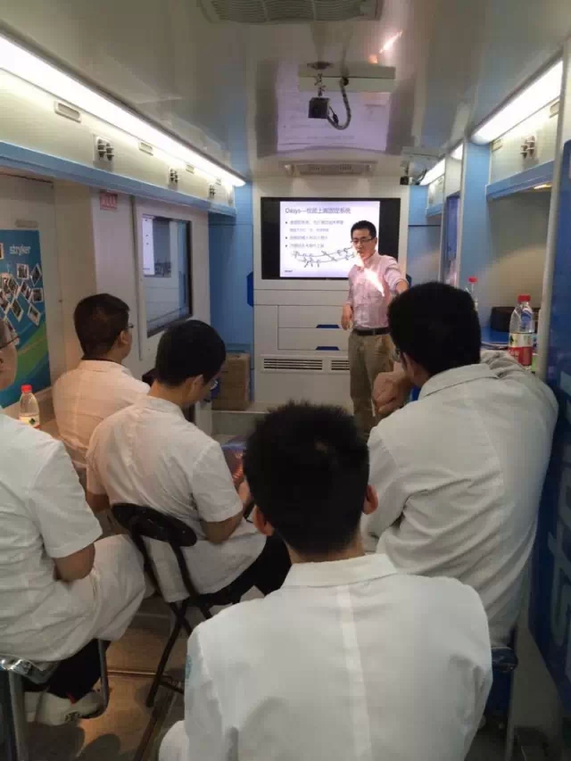 2015年5月23日,我院邀请了北京史塞克(北京)医疗器械有限公司的技术人员来院作培训,相关临床科室医护人员参加了培训,此次培训在史塞克移动教育服务展示车上进行。