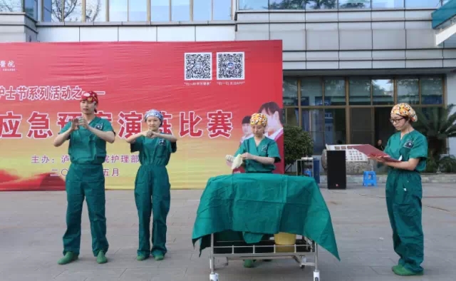 比赛现场,医护人员分别对醉酒后伤医应急预案、猝死应急预案、输液反应应急预案等10种护理应急预案进行了演练,我院叙永分院和泸县分院分别展示了生死时速·120在行动和跌倒应急预案演练。