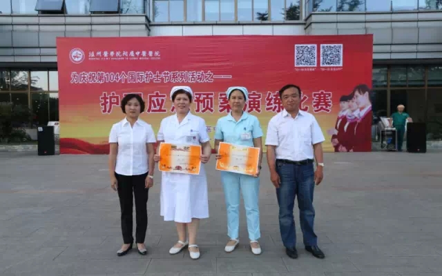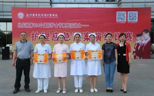 活动现场 2015年5月8日,我院举行了“5·12”国际护士节系列活动之应急预案演练比赛。泸州市卫计委副主任张永志,我院党委书记王琳等党政领导和护理人员代表参加了本次活动。