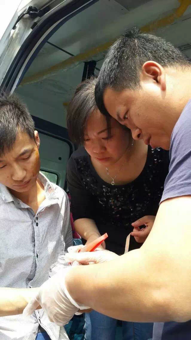 4月16日13:55,我院应急医疗队回院路上,路遇一辆货车侧翻在地,司机受伤,被困在车内。我院应急医疗队立即停车,将受伤司机从车内救出,并为他进行消毒、伤口包扎等处理。紧急处理后,正好路过的警察将患者送往附近医院进一步处置。“当时在乐山犍为高速路上看到一辆货车侧翻在地,我们拿起救护包立即跳下车进行救治。幸运的是,司机受伤不是很严重。”我院水井沟急诊科副主任晏新告诉记者。