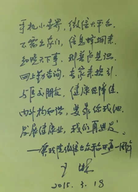 2015年3月18日是我院官方微信开通一周年之际,收到了来自医院党政领导、临床科室专家、病员朋友及社会各界和广大媒体朋友的祝福。 我院官方微信自开通以来,每天定时发布咨询、健康、便民等信息,搭建医生与患者之间的互动交流渠道,传递健康理念,倡导人们健康生活。截止目前,共向用户推送信息2000余条,内容涵盖《医院资讯》、《健康科普》、《影像记》、《名医名片》、《养生斋》、《新技术》、《分院动态》、《好书推荐》、《生活小窍门》、《周末轻松一刻》等。为更加方便患者就医,医院还对微信进行了功能升级,增加了医院概况、便民服务和就医指南等栏目。随着功能的进一步完善,我院将进一步推广微信技术功能,开通医疗APP和微信预约挂号支付等功能,进一步方便广大客户。 据悉,我院官方微信目前受众人数已达4600余人,只需在微信上搜索“泸医中医院”或公众平台订阅号“ly_3162263”即可加入我院官方微信大家庭。医院将不断完善公众微信,陆续推出预约挂号、查询诊断信息等功能,让市民朋友足不出户即可了解更多健康资讯。相关链接: 官方微信开通一周年之际,收到了大家的祝福。