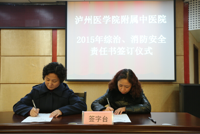 2015年3月5日,我院召开2015年综治消防安全工作会,党委书记王琳和职能部门负责人、支部书记、纪委委员、临床科室主任、护士长及助理参加了会议。 会上,党委书记王琳分别与各支部书记代表签订了2015年综治、消防安全责任书。 随后,党委副书记·纪委书记赵国强作了医院安全生产工作教育宣贯和工作要求强调。