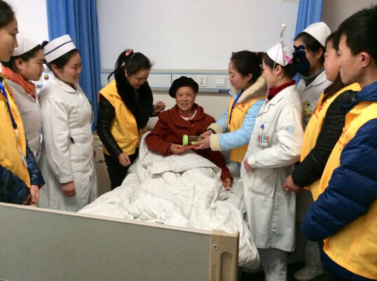 2014年12月31日,我院肿瘤·血液病科医护人员与泸州义工在我院忠山住院部肿瘤·血液病科,为病区所有住院患者送上节日祝福和生活必需品,共祝他们节日快乐!
