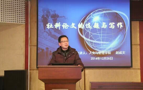 随后,泸州医学院人文与管理学院院长赵成文教授作了题为《社科论文选题与写作》专题讲座,赵成文教授从学术论文分类、社科论文选题等方面作了深入浅出的讲解。