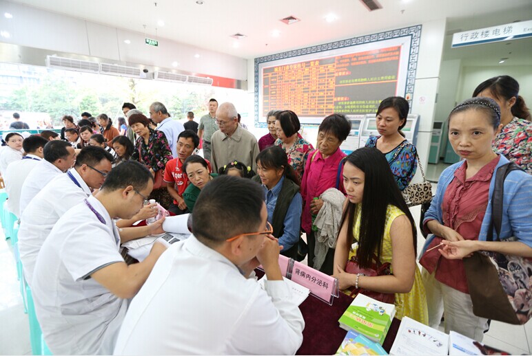 为进一步深入开展党的群众路线教育实践活动,为庆祝中华人民共和国成立65周年,我院“服务百姓健康行动”活动继续进行。2014年9月23日,我院心脑病科、肾病科、肝胆病科、脾胃·风湿免疫病科和肺病科在城北新院举行了大型义诊活动,为前来咨询的群众答疑解惑,免费发放宣传资料。