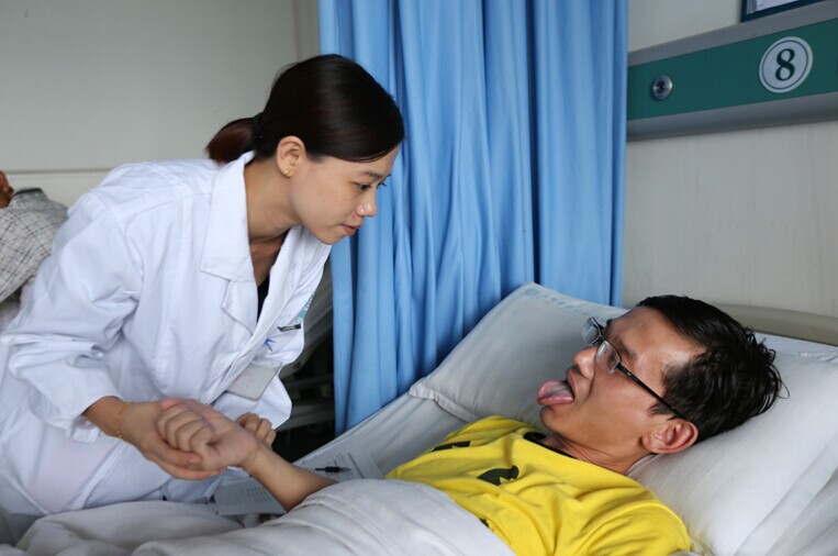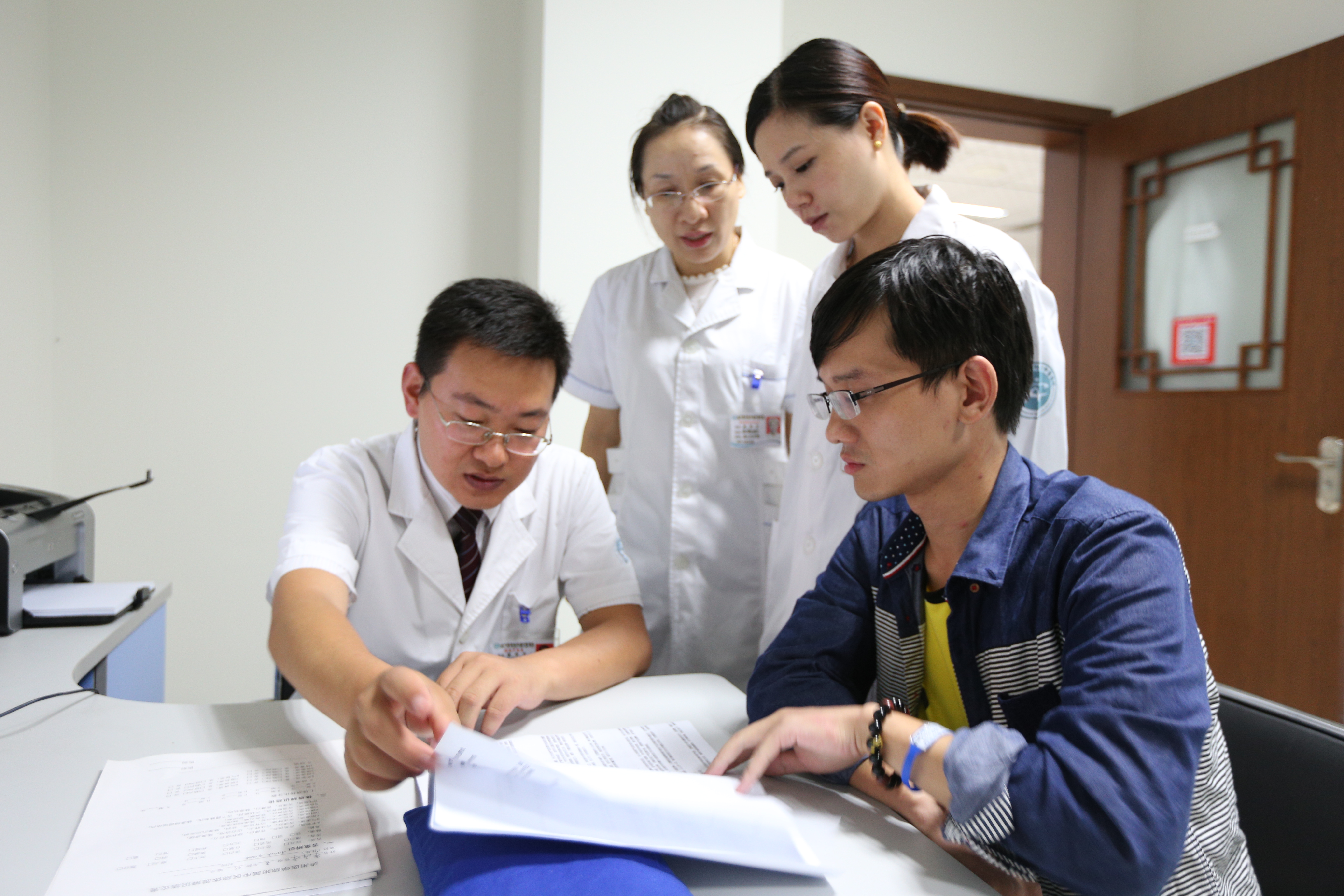 治未病中心主任徐厚平博士(左一)为住院患者进行体质分析