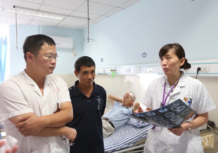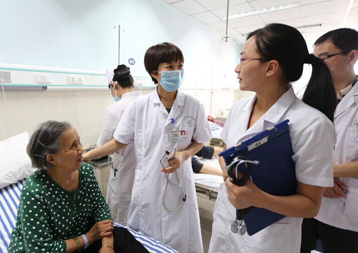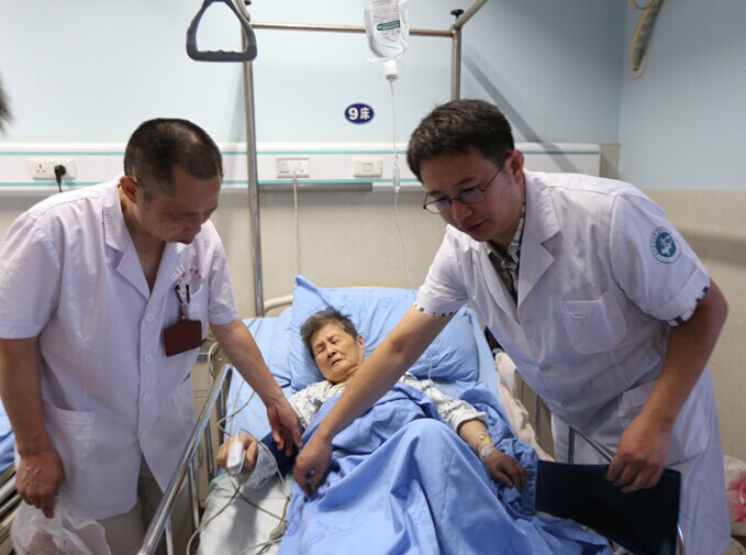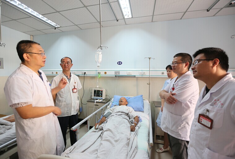 大内科主任、心脑病科主任白雪教授(右)教学查房
