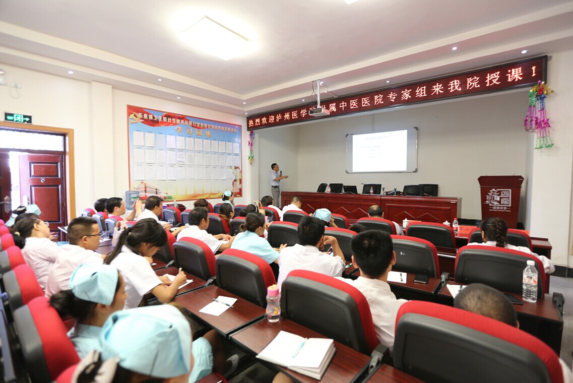 2014年8月5日,我院党委书记王琳带领心脑病科、重症医学科、肝胆病科、骨伤科、妇产科、儿科、放射影像科、疼痛科、急诊科等20余名专家分别前往贵州省习水县中医院、习水县人民医院、东皇镇卫生院和仁爱医院开展知识讲座,为他们送上最前沿的医疗信息。座谈交流 共推习水卫生事业发展 党委书记王琳等领导,部分临床科室专家与习水县卫生局及习水县医疗单位相关领导进行座谈交流。习水县卫生局局长袁涛介绍了当地卫生资源分布和配置情况,并期望我院指导习水县当地医疗卫生机构进一步提高医疗技术水平和服务能力,为习水县人民群众提供便利和优质的卫生服务,为革命老区健康保驾护航。同时能够多为当地举办中医、中西医结合专题知识讲座和医疗卫生专业人才培养,促进红色老区卫生事业的发展。 党委书记王琳在会上讲话。她指出,我院将按照“医院不分大小,发展不分先后,同行相互切磋,互助才是出路”的发展理念,一直以来并将长期乐于、勤于、勇于、善于为基层医疗机构提供技术传授、人才培养、管理指导,切实为习水县医疗卫生事业的发展做出积极的贡献和努力。专题讲座 前沿医学信息送红色老区 “此次内容丰富,很受益,非常感谢专家不畏炎热来我们习水开讲座。”习水县中医院一医务人员告诉记者。在习水县中医院,心脑病科主任白雪教授、肝胆病科主任汪静教授、骨伤科(创伤组)主任助理杨家福教授分别开展了《常见心律失常的处理》、《脂肪性肝病的中西医诊断及治疗进展》、《骨盆骨折闭合复位》等专题讲座。 与此同时,放射影像科主任斯光晏副教授、重症医学科主任李晓斌副教授、疼痛科主任刘庆教授、骨伤科主任扶世杰教授、CT室主任何其舟、胸外科主任岑小波教授、急诊科主任林勇副教授、骨伤科(创伤组)副主任马川副教授、妇产科主任王永周副教授分别在习水县人民医院、东皇镇卫生院、仁爱医院就《颅内动脉瘤的介入治疗》、《危重病人的营养支持》、《疼痛科建设》、《关节疾病的治疗》《CT室的临床应用》、《常见危急重症的快速识别和处理技巧》、《现代急救医学概况》、《骨创伤疾病的诊治》、《胎心监护的基础知识》作了专题讲座,深受当地医护人员好评。