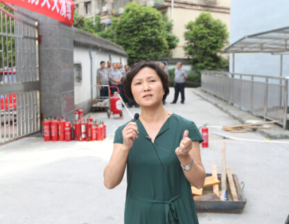 泸州市消防支队培训中心主任王伟现场演练灭火器使用方法