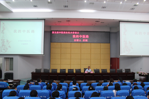 上午9:30,庄教授在城北校区学术报告厅举行了题为“我的中医路”的专题讲座,拉开了第五届中医药文化大讲堂的序幕。中西医结合学院及药学院300余名2013级新生聆听了本场讲座。