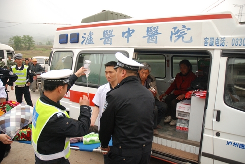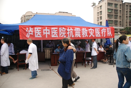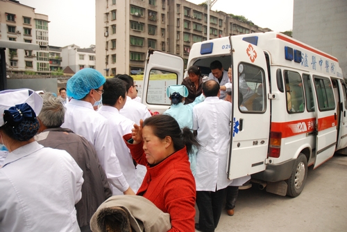 4月21日,我院抗震救灾医疗队在雅安市中医医院门前设置了独立医疗救治点,分批行动,忙碌有序地开展救援工作。部分队员在搭建的临时救治点开展救治工作;部分队员往重灾区宝兴县接运病人。4月21日(截止15时30分),我院抗震救灾队已单独救治受伤患者28人,救护车运送病人及家属18人,目前,我院救护车又在赶往宝兴县接运病人路上,预计有20余名伤员需要运送。