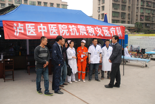 4月22日下午1:20,国家中医药管理局医政司副司长杨龙会 、四川省中医药管理局医政处副处长苏小川一行在雅安地震灾区看望慰问我院抗震救灾医疗队队员。