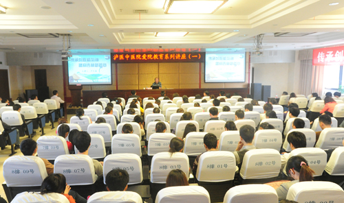 医院党委书记王琳代表全院师生员工对尹杰霖书记表示最热烈的欢迎和最衷心的感谢。王书记指出,今年是泸医附属中医医院纪念建院三十周年,为继续发扬“团结建院、艰苦建院”医院精神,增强职工荣誉感、责任感,继承老一辈泸医中医院人“爱岗敬业、爱院如家”的爱院精神,医院策划了由团委牵头,相关部门配合开展的以“感恩·奋进·成才”为主题的爱院教育系列讲座活动。担任第一讲的是现任四川省中医药科学院党委书记尹杰霖教授,他原任泸州医学院党委书记,曾经于1994—1998年担任过附属中医院的党委书记,是医院的领导者、建设者和见证者之一,参与和见证了医院从小到大,从弱到强的发展历程,也一直关心、关注和指导帮助着医院的发展和建设。王书记希望全院干部职工特别是年轻职工珍惜学习机会,全面了解医院的发展历程、深刻领悟医院发展的启示和经验,倍加珍惜来之不易的发展成果,凝心聚力为医院发展做出应有的贡献。