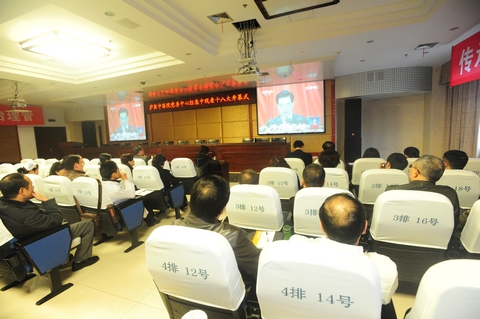 参会人员全神贯注,以高度的政治责任感和饱满的学习热情集中收看了党的十八大开幕式盛况,认真聆听了胡锦涛同志代表第十七届中央委员会向大会作的报告。