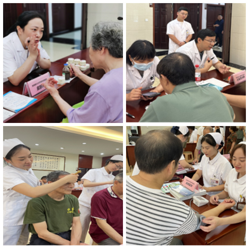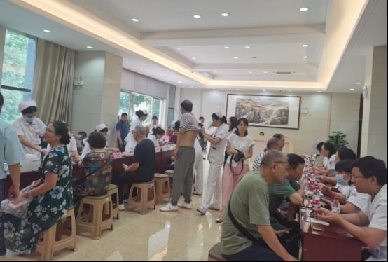 活动中,医护人员为老干部们进行了义诊,提供了耳穴压豆、艾灸、铜砭刮痧、火龙罐、杵针、中医体质辨识等中医特色护理服务,免费测量了血压血糖,并赠送了中药香囊、中医润肤膏、中医线香、院内制剂等。