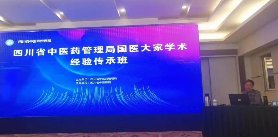 2023年9月21日,四川省中医药管理局国医大家学术经验传承班在成都开班,我院四川省十大名中医王明杰教授受邀在培训班上授课。王明杰教授以《玄府理论及开玄府治法》为题,为全省100名中医骨干人才作了专题讲座,系统介绍了“川南玄府学说”理论及临床应用。