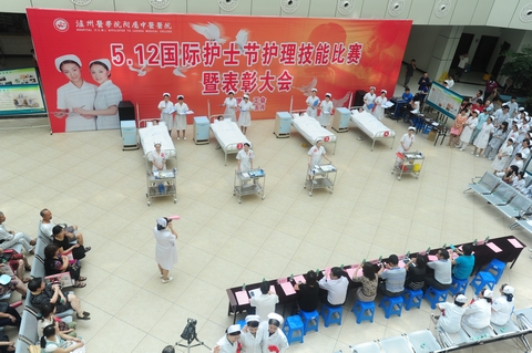 为迎接第100个“5.12”国际护士节的到来,弘扬南丁格尔无私奉献的崇高精神,进一步提高我院护理队伍服务质量和服务水平,5月9日,医院举办了纪念“5•12”国际护士节护理操作比赛暨表彰大会。医院党委书记王琳等党政领导及全院300余名护理人员共同观看了比赛。来自全院各临床科室的36名护理人员参加了比赛。