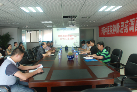 医院副院长杨文信对静脉用药调配中心的建设情况以及建成静脉用药调配中心后使用向专家组做了汇报。汇报会结束后,专家组通过实地查看、查阅资料、现场访谈等形式,对静脉用药调配中心布局设置、中心设备、人员构成、工作流程、感染管理等方面进行了全面、系统、严格、细致的检查。