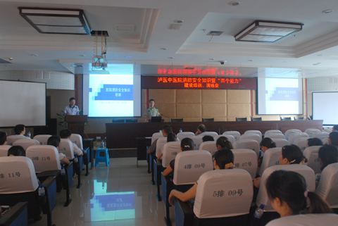 泸州市公安消防支队一中队排长谭祥廉对在家全体院领导、各临床、职能科室负责人、全体义务消防队员、保洁队员进行了消防知识暨“四个能力”建设知识讲座。谭排长从怎样防火、灭火及逃生自救技巧等几个方面进行了讲解,他通过系统生动的讲课,精彩的案例分析使职工对消防安全有了更新、更深的认识。
