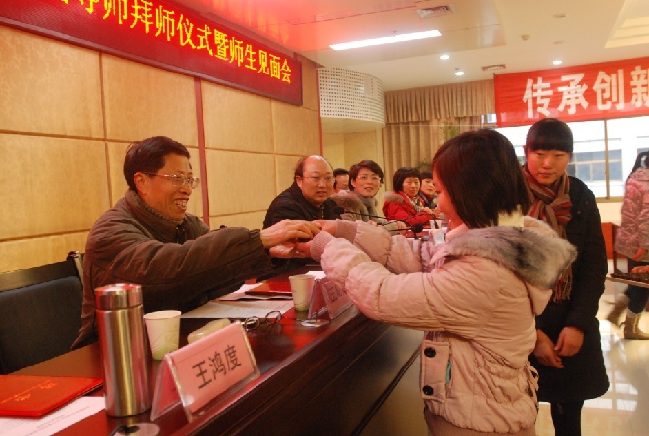 拜师仪式上,各位徒弟分别向自己的导师敬拜师茶、行拜师礼并献上鲜花。导师代表王明杰教授发言,王明杰教授向同学们讲了导师制的起源、意义和主要任务,学生代表对导师制表示了极大的热情和努力学习的决心。