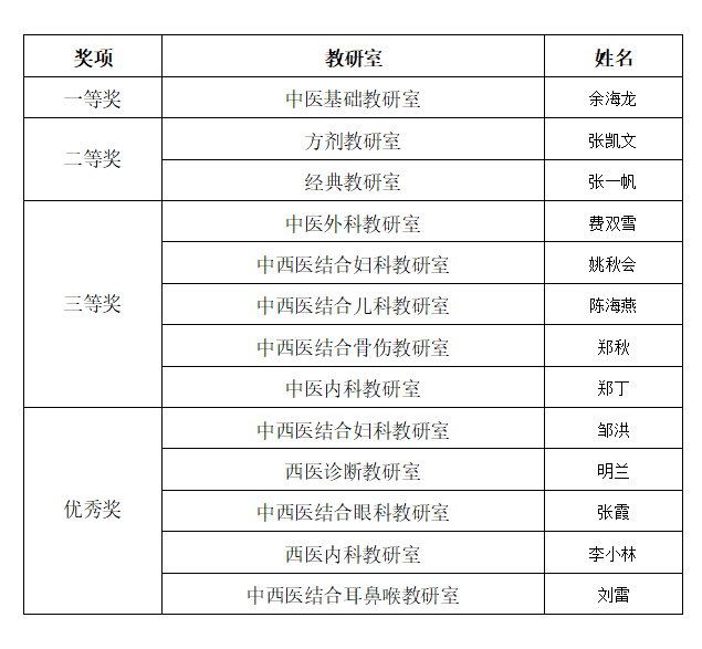 本次比赛包含教学创新成果报告、教学设计创新汇报和现场授课三个环节。经过角逐,评出一等奖1名,二等奖2名,三等奖5名,优秀奖5名。