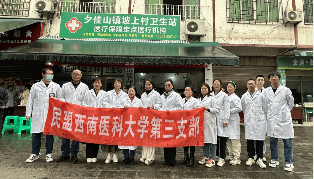 近日,民盟西南医科大学第三支部(西南医科大学附属中医医院支部)联合医院磁共振室到宜宾江安县夕佳山镇坡上村开展了义诊活动,为当地居民免费看病、测量血压、提供相关疾病咨询、发放健康手册等。