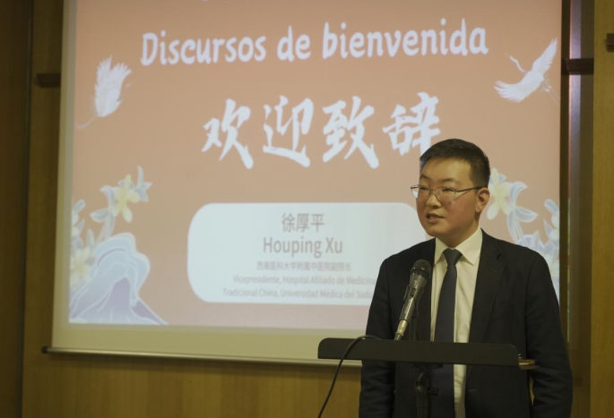 徐厚平致辞,他表示,希望通过此次活动,为海外群众搭建起了解、认知、体验中医药文化的平台,希望大家能够积极参与、交流互鉴、广泛合作,共同推进传统中医药在西班牙的传播,推动中西中医药文化健康持续发展。