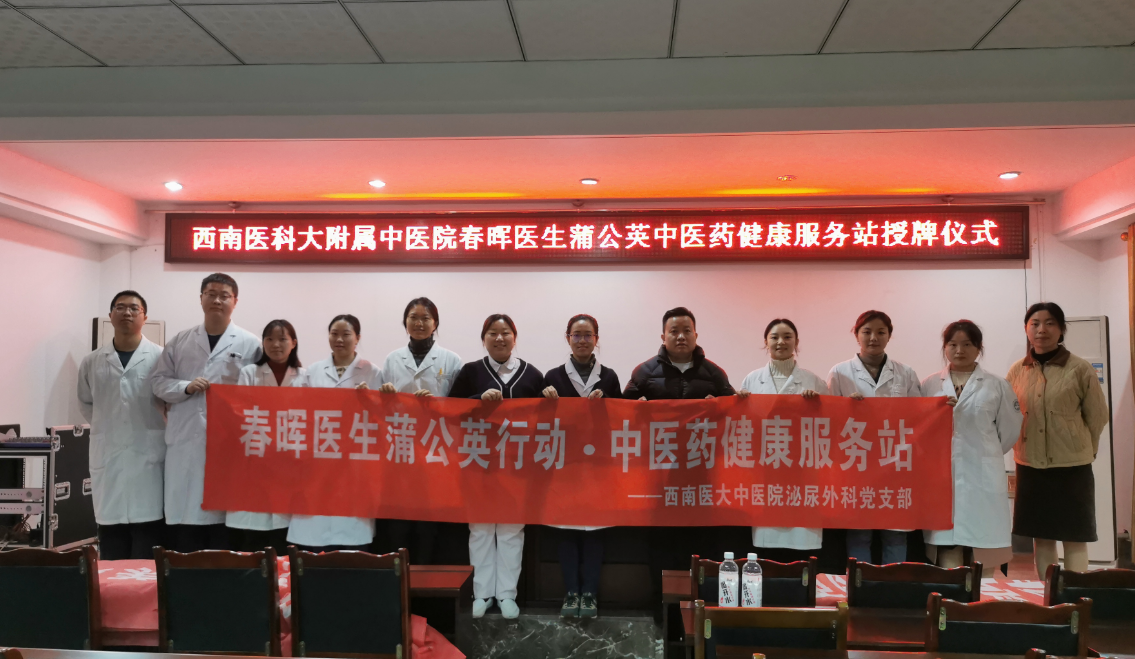 2023年12月1日,我院泌尿外科党支部与江阳区蓝田牛市坎社区党支部举行了春晖医生蒲公英行动·中医药健康服务站授牌仪式,医院副院长徐厚平、牛市坎社区党支部书记许小红、相关党支部成员及社区人员等参加了仪式。