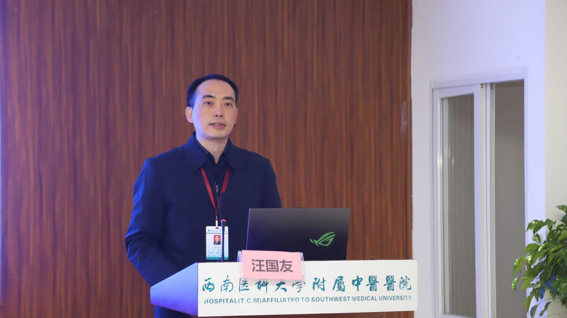 汪国友致辞,他介绍了医院基本情况及骨伤科建设概况,希望各位同仁以此次培训班为契机,分享交流骨质疏松防治领域新理念、新知识、新技术,以骨质疏松防治为切入点,共同搭建学术交流平台,不断提升业务能力和服务水平,为人民群众身体健康和生命安全保驾护航,为四川国家中医药综合改革示范区建设及中医药强省行动贡献力量。
