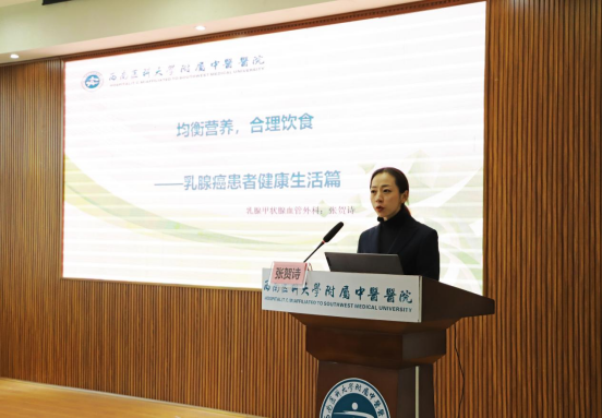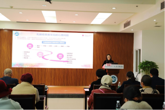 随后,易小全教授讲述了建科历史;患者代表聂女士分享了治疗经过;万霞主治医师、冷婕主治医师、科室护士长张贺诗分别以《疾病科普:经典焕新,重获新生》《心理康复:乳腺癌患者十问十答》《膳食指导:均衡营养,合理膳食》为题作了专题讲座。