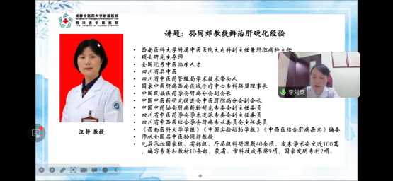 2023年12月16日,2023年四川省中医药学会脾胃病专委会脾胃病学术年会暨省级中医药继续教育项目“脾胃病辨证论治培训班”暨四川省中医脾胃病专业医疗质量控制中心年会暨四川省中医药防治重大疾病溃疡性结肠炎中心会议暨四川省中医药防治溃疡性结肠炎专病联盟会议在线上召开,我院大内科副主任兼肝胆病科主任汪静教授受邀作了《孙同郊教授辨治肝硬化腹水经验》专题讲座。